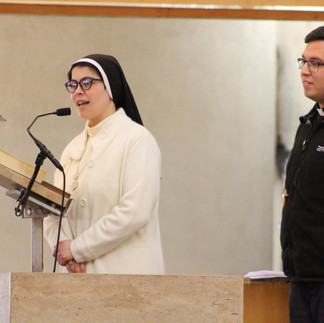 El hermano Javier Navarrete junto a la hermana Pamela Remelink de las Hermanas Mercedarias del Santísimo Sacramento, coordinaron la pastoral de la carrera de Teología, desempeñando un papel clave en la actividad, la cual fue organizada en conjunto con el Centro de Estudiantes de Teología de la UC.